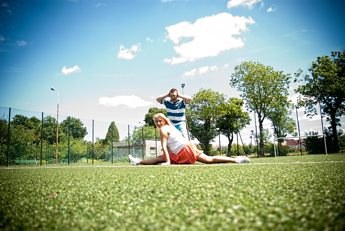 Piłka do nogi to element wydawałoby się bez którego nie uda się zrealizować sesji football’owej. Mieliśmy przygotowane wszystko, stroje, rękawice bramkarskie, korki, skarpety itd… a nie mielismy piłki :( na szczęscie mój synek zgodził się bez płaczu pożyczyć tacie piłkę do sesji. Dodam, że piłka była rozmiaru piłki do ręcznej ale daliśmy radę. Atmosfera była przednia :) sam nawet kilkakrotnie popłakałem się ze śmiechu. Zdjęcie tego dnia wykonywała również Dagmara, której udzielała się wesoła atmosfera :) sam czekam na jej efekt końcowy. Dzięki za mile spędzony czas i mam nadzieję, że jeszcze kiedyś zrealizujemy inny, równie odjechany projekt.